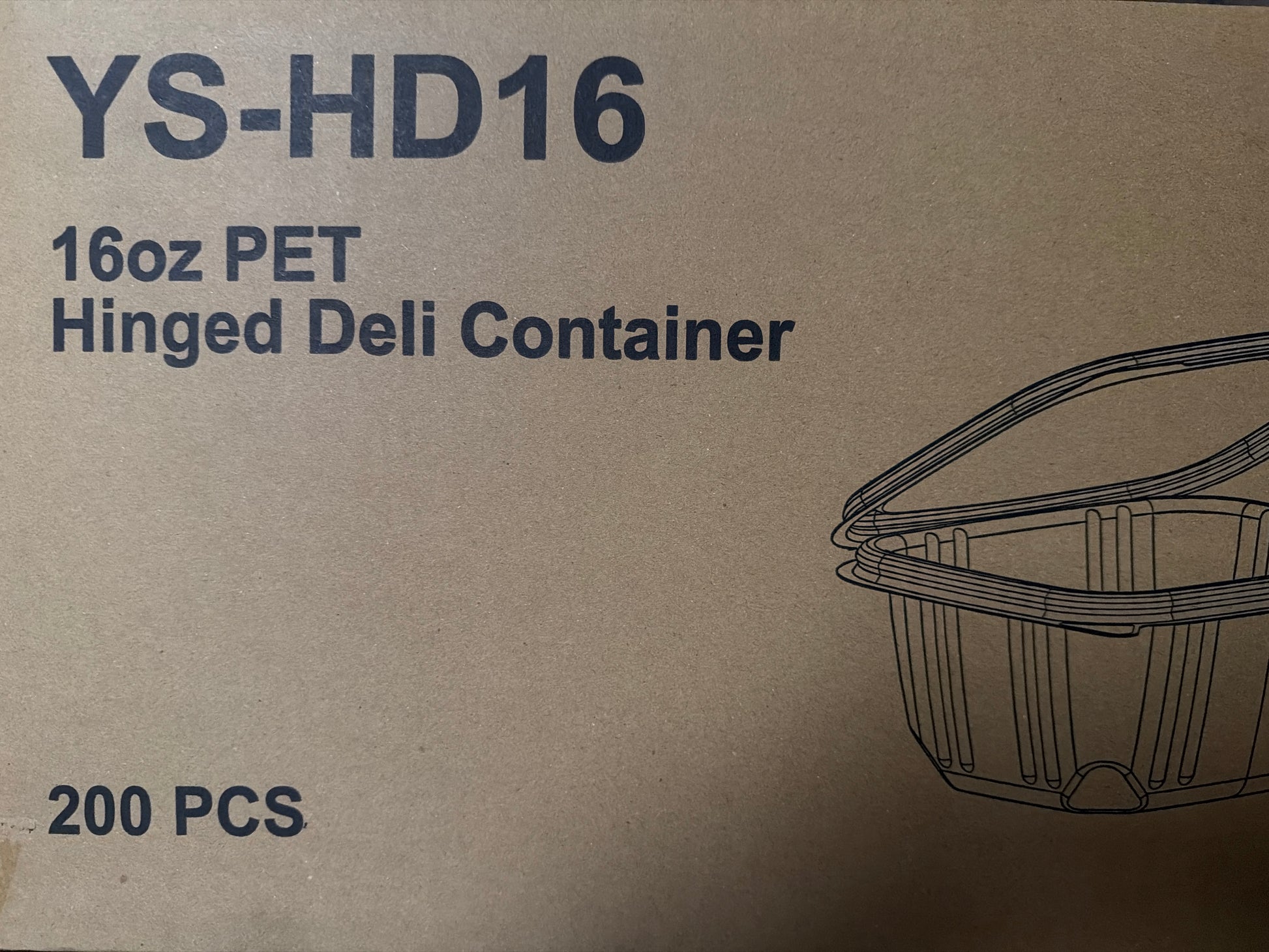 16oz PET Hinged Deli Container 200pcs/case