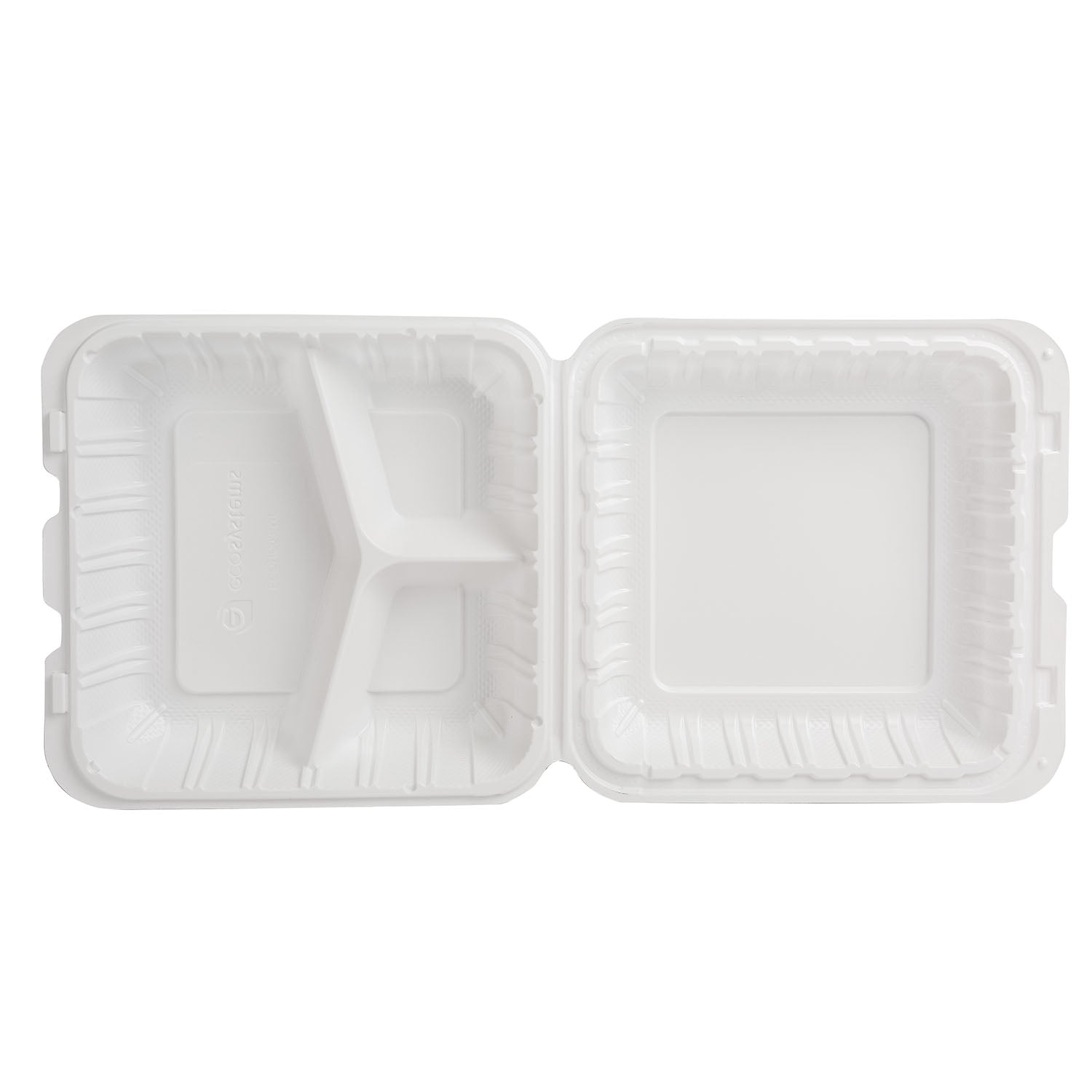 (234) PP ECO White Hinged Container 9x9x3" 150pcs/case
